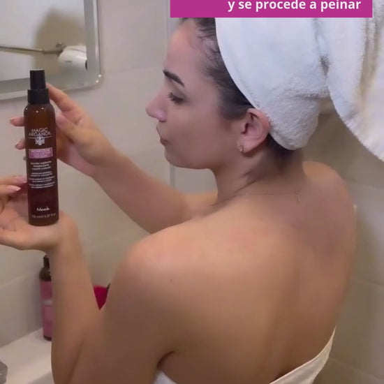 - Con el cabello húmedo, rocía desde raíces hasta puntas